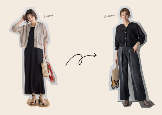 「秋服が気になる、でもまだ暑い」そんな毎日にフィットする、着回し力の高い“スイッチアイテム”をご紹介いたします。