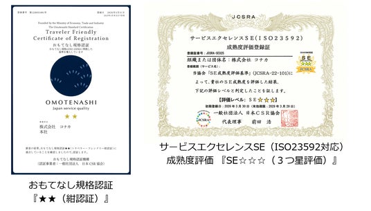 「おもてなし規格認証」は初取得の2018年以来3回目の認定更新、「サービスエクセレンスSE成熟度評価」は初取得の2023年以来はじめて認定更新となります。