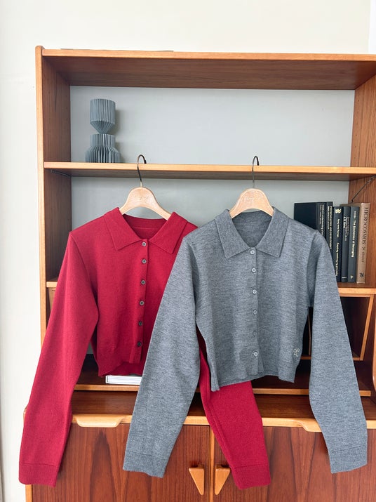 ニットカーディガンは、短すぎない丈感が絶妙なクロップドデザインで低身長の方でもバランスよく着こなせるサイズ感に仕上げました。左下には“K”の文字の刺繍を同色でさりげなくあしらい“夏菜子”をアピール。