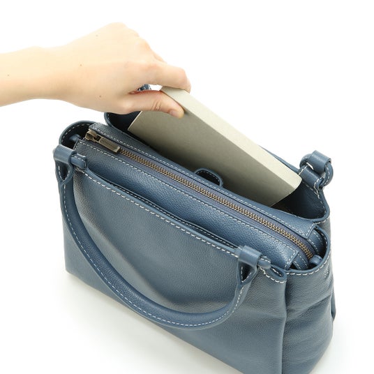 整理整頓がしやすい3層構造になっていて、前後についた外ポケットは、スマートフォンや文庫本がすっぽり入るサイズです。