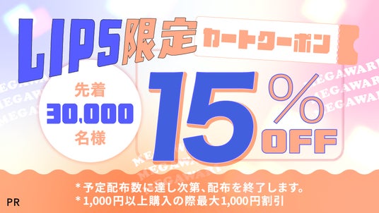 Qoo10「メガ割」で配布されるクーポンとは別で、LIPSを愛用していただいているみなさまに向けて、LIPS限定配布の2種類のクーポンをご用意しています。ぜひこの機会にご利用ください。