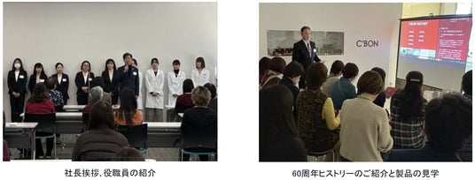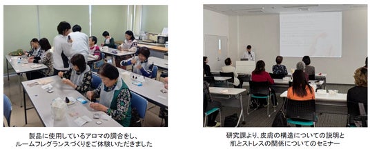 【プログラム】・役職員紹介 ・生産センター、研究開発センター見学 ・60周年ヒストリー紹介&歴史製品見学 ・研究課によるセミナー ・製品の香りのルームフレグランスづくり体験