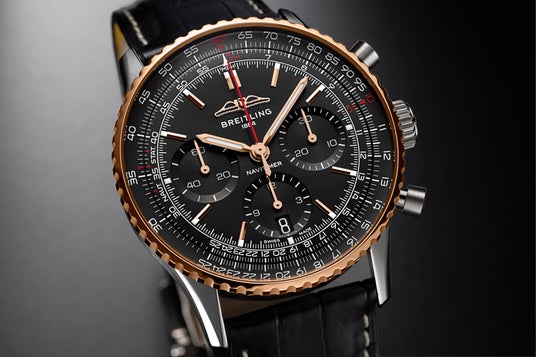 ブライトリングの伝説的なタイムピース、ナビタイマー。 70年以上にわたって伝統を受け継ぎ、その機能的な特徴を守りながらも現代的な洗練を加えた、日本限定のナビタイマーが登場します。 ゴールドとブラックが際立つ端正なエレガンスは、腕元に確かな存在感をもたらします。
