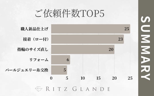 北海道札幌市のジュエリー修理・リフォーム専門店のRITZ GLANDEは、2026年3月にご依頼いただいた内容を集計いたしましたので上位5位までをランキング別にご紹介します。
