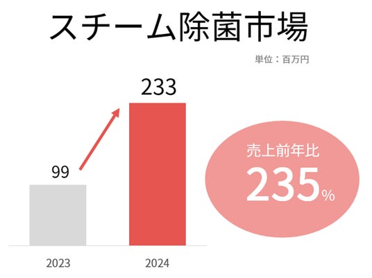 2024年には、スチーム除菌の市場規模が前年比235%(※1)と大きく伸長しており、需要の高まりが明らかになりました。