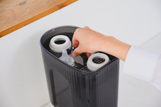 容器を2段トレイ仕様にしたことで、幅わずか15cmとコンパクト設計を実現。現行品より8cmもスリムになりました。また、乾燥後は容器内で哺乳びんをそのまま保管可能なため、衛生的かつ省スペースにお使いいただけます。育児用品が増えがちな時期でも、限られたキッチンスペースを有効に活用できます。
