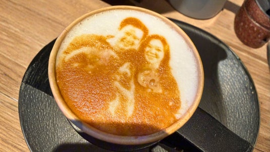 カフェラテプリント: お二人の思い出の写真をラテにプリント。