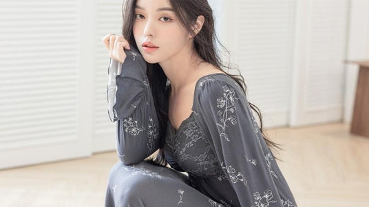 花柄のチャコールグレーが上品で、スタンプ内でも“おやすみポーズ”のキャラクターが着用しています。