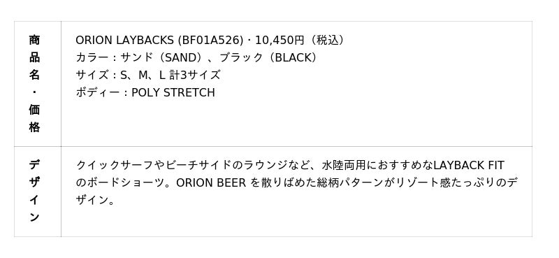 オリオンビール公式通販にて対象アイテム(ショーツ ORION LAYBACKS (BF01A526))をご購入頂きましたお客様に、先着200名様にクージー2個セットをプレゼント!