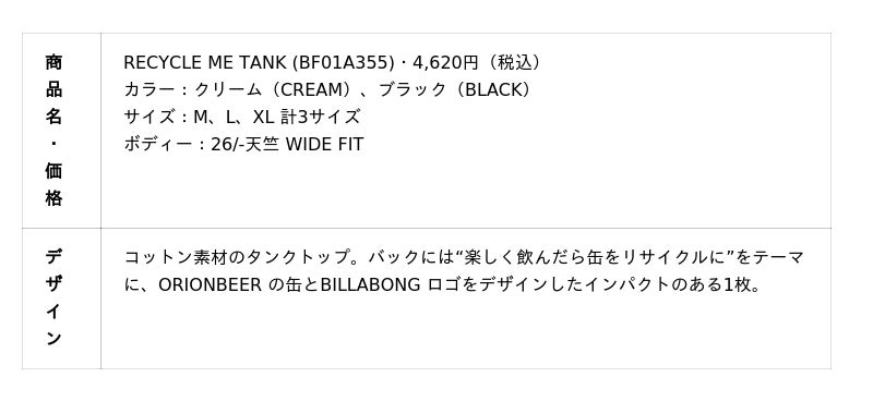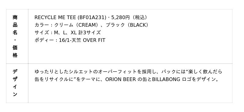 沖縄の自然や南国の雰囲気を表現したORION BEER の世界観と、BILLABONGが持つ自由で開放的なサーフカルチャーが融合。海を愛する2 つのブランドが手を組み、リゾート感あふれる特別なアイテムを展開します。