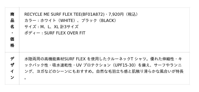 今季は、定番のコットンTEEに加え、女性向けアイテムやアウトドアでも活躍する水陸両用ユーティリティウェアが新たに加わり、より幅広いスタイルを提案します。アイテムは全16 型がラインナップ。