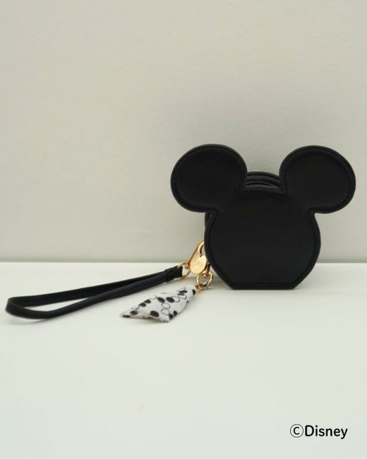 ミニポーチは、「ミッキーマウス」のシルエットを象ったデザインで、裏地にはブラウスとスカート同様のプリントを採用しました。ちょっとした小物入れに最適なミニマルなサイズ感で、バッグチャームとしても活躍します。