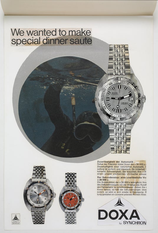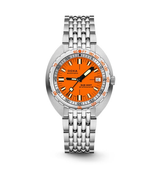 DOXAはこの年、一般市場向けとしては初となる本格的なダイバーズウォッチを発表しました。潜水時間を管理するための逆回転防止ベゼルを備え、安全な無減圧浮上をサポートする設計を採用したこのモデルは、当時として画期的な存在でした。こうした革新的な機能とともに誕生した「DOXASUB」は、ブランドを象徴するオレンジダイヤルによって瞬く間に認知され、ダイバーズウォッチの歴史において伝説的なモデルとして確固たる地位を築きました。