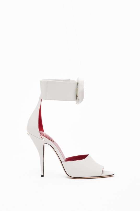 足元には、25/26年秋冬コレクションの新作のシューズ、'ドリップローズ (DRIP ROSE)'のサンダルを合わせ、ルックを完成させています。