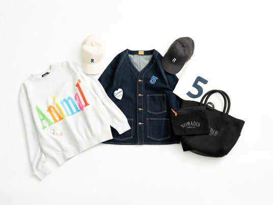(左) STUDIO WEAREALLANIMALS / Sweat & Keychain (中央) PAYDAY / Engineer Jacket(中央)RHC / 5th Tee, Cap(右)NOMADIS / Bag & Poach