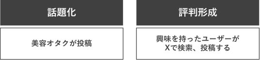 以上の調査をまとめると、Xでの話題化、評判形成という一連の流れにおいて、美容オタクの投稿による影響と広がりは以下のように整理できます。