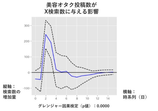 グレンジャー因果性、インパルス応答という統計的な手法を使って、Mimi Beauty会員の投稿とX検索数を可視化。