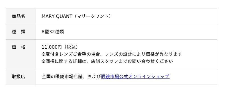 眼鏡市場は、「自由に 自分らしく」のコンセプトでコスメやファッションアイテムを展開し、年齢を問わず幅広い世代の方々の人気を集める『MARY QUANT(マリークワント)』のサングラス(眼鏡市場限定モデル)を、全国の眼鏡市場店舗、および眼鏡市場公式オンラインショップにて販売しています。