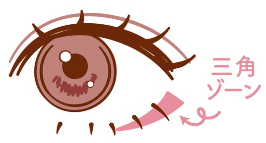 下まぶたの三角ゾーンに塗布すると自然なデカ目に(ハート)
