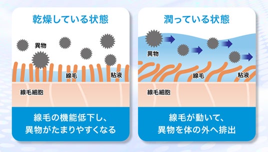 のどや鼻を保湿して線毛の潤いを保つことは、風邪やインフルエンザ、黄砂、花粉といった外的要因への抵抗力を高めるうえでも重要であり、日常的に取り入れたい新しいケア習慣です。