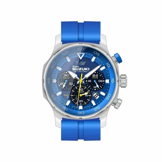 このモデルは、SUZUKI「Team CN CHALLENGE」のレースマシン「GSX-R」をモチーフに、スズキブルーを基調としたカラーリングを採用。ケース・文字盤・ストラップに至るまで、マシンの力強さと機能美を1本の時計に凝縮しています。