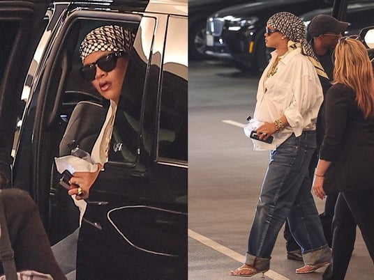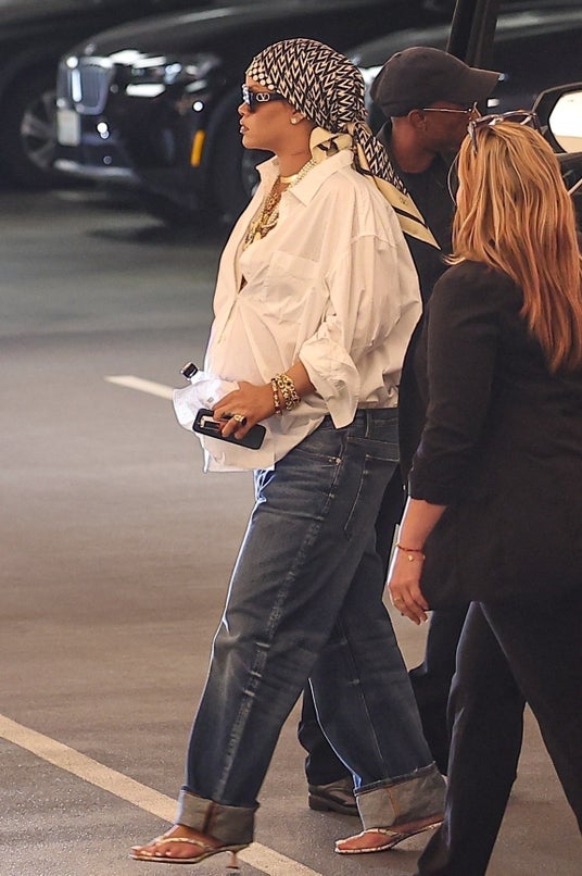 2025年7月31日 ロサンゼルスにて、歌手のリアーナがヴァレンティノ アイウェアとヴァレンティノ ガラヴァーニのスカーフを着用しているところを目撃されました。
