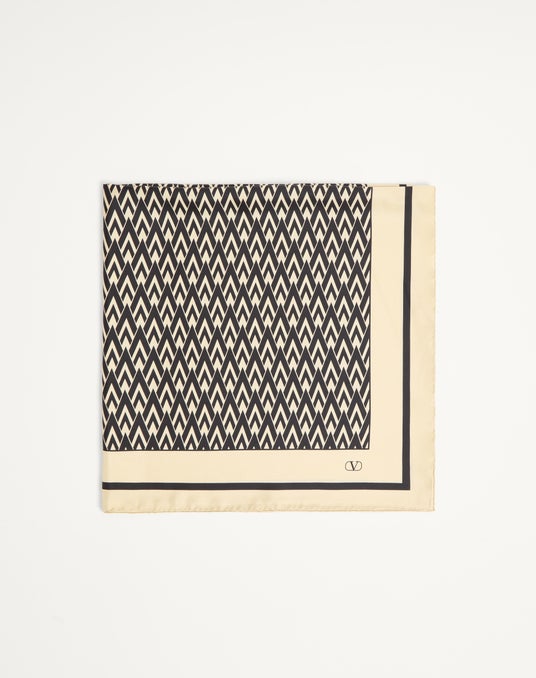 ヴァレンティノ ガラヴァーニのアイコニックな「Vロゴ」を全面に施した柄が特徴的なトゥッタラ Vのシルク スカーフと、目元にはレトロシックなフォルムに、サイドの「Vロゴ」が象徴的なヴァレンティノ アイウェアを着用しました。