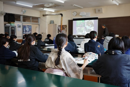 本取り組みは、同校の生徒が洋服の大量廃棄問題を背景に「ファッションの選択肢としての着物」を探究するために企画したものです。当社は、社会的な活動に着物を提供する「いいもの、つづくものプロジェクト」の一環としてこれに協力し、生徒・教員が実際に着物姿で学校生活を送る調査をサポートしました。
