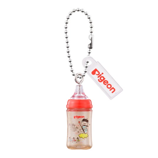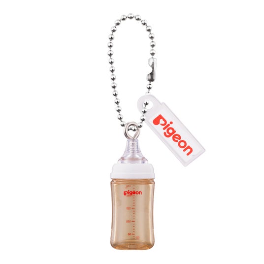 国内市場シェアNo.1の哺乳びん「母乳実感 哺乳びん(プラスチック製)240ml」をモデルにしています。長年の研究に基づき開発され、沢山のご家族から支持いただいている哺乳びんをミニチャームでもリアルに再現しました。