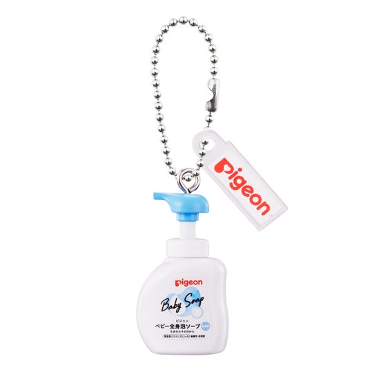 「たまひよ赤ちゃんグッズ大賞2025」のベビーソープ部門で第1位(※3)を獲得している、「ベビー全身泡ソープ 500mlボトル」をモデルにしています。ミニチャームのポンプ部分は、実際に押せるしかけ付き!