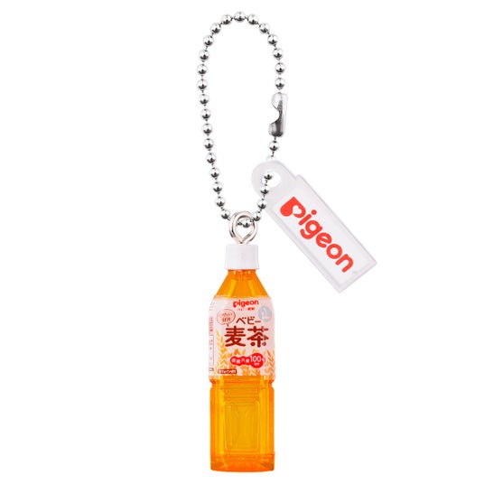 ロングセラー商品である「ペットボトル飲料 ベビー麦茶500ml」をモデルにしています。赤ちゃんにも飲みやすい、にがみの少ないやさしい味わいで大人気。ミニチャームになっても、細かなラベルを忠実に再現しています。