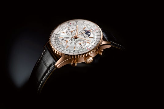 ナビタイマー B19 クロノグラフ 43 パーペチュアルカレンダー ジャパン リミテッドは、18Kレッドゴールド製43mmケースにマザーオブパールを文字盤に採用。天然由来だからこそ、一点ずつがそれぞれの煌めきを放ち、12時位置の精巧なムーンフェイズが美しく映えます。内蔵するコンプリケーション・ムーブメントのみならず、文字盤でもブランドのクラフツマンシップを感じられる最高峰のクロノグラフ。日本限定わずか20本、それぞれが唯一無二のタイムピースです。(税込価格888万8000円)※2025年11月時点
