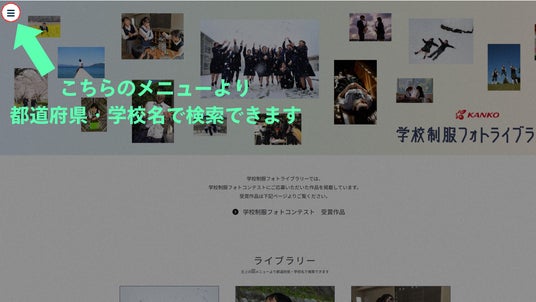 菅公学生服株式会社が主催する「学校制服フォトコンテスト」の応募作品を掲載しているオンライン写真ギャラリーです。コンテスト歴代受賞作品を含む、約1万点の作品を掲載しています。学校名、都道府県、服種等を指定して作品を検索でき、母校や志望校の制服を調べる、遠い地域に住む学生の作品を見るなど、さまざまなスタイルでご覧いただけます。