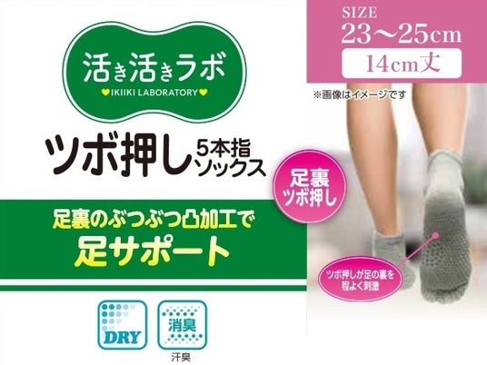 ツボ押し5本指ソックス足裏にツボ押し加工を施しており、程よく足裏を刺激します。