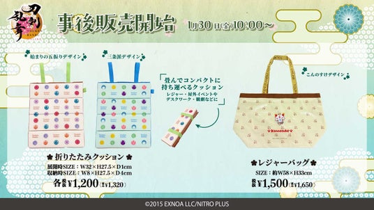 『刀剣乱舞ONLINE』のキャラクターやモチーフをあしらった、日常使いのできるアイテムをラインナップ。アウトドアなイベントにも、『刀剣乱舞ONLINE』のアイテムで素敵な時間を。