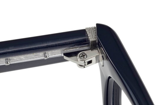 ※フロントとテンプル(つる)をつなぐ金属パーツをピンでしっかり固定する伝統的なつくり。