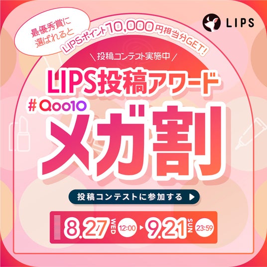 より多くの方にQoo10「メガ割」コラボ企画を楽しんでいただくため、LIPSユーザーから大好評のイベントである「LIPS投稿アワード」を開催しています。気になるアイテムや実際の購入品について、LIPSにクチコミを投稿してみてくださいね。