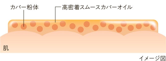 カバー粉体と親和性の高いオイルによってカバー粉体が凝集せず、均一に分散するため厚塗り感なし。