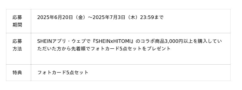 ◆【シーズンモデル就任記念】SHEIN JAPAN初!フォトカードキャンペーン概要