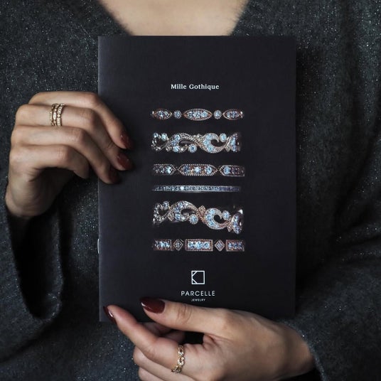 ■ Mille Gothique Booklet ― ミルゴシックの世界を冊子でご紹介「Mille Gothique(ミルゴシック)」は、ゴシック建築を思わせる意匠と、アール・デコ期の美意識を継承した、パーセル ジュエリーを代表するシリーズのひとつ。手打ちによるミルが生み出す煌めきと陰影がダイヤモンドを引き立て、静謐な美しさをたたえています。