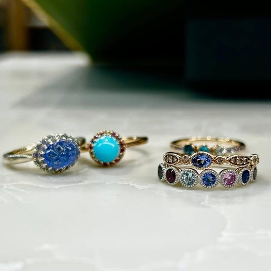 ■ Birthstone Jewelry ― 12月の誕生石ジュエリーたち12月の誕生石である「Tanzanite(タンザナイト)」、「Lapis Lazuli(ラピスラズリ)」・「Turquoise(ターコイズ)」を、あべのハルカス店にてご紹介いたします。古くから“お守りの石”として親しまれてきた3つの青は、それぞれ異なる個性と意味を持ち、身に着ける方の気持ちを静かに整えてくれる存在とされています。