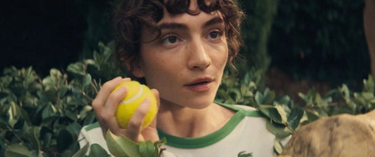 一人の若い女性が現れる。手にはテニスボール。