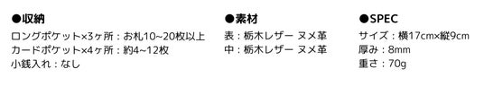 薄い長財布 8mm スペック(キャメル/ブラック/カーキ3色)