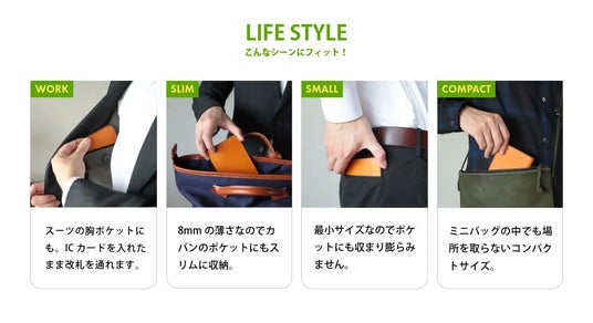 小銭入れを省いたことで、ポケットやバッグにすっと収まる薄型デザインに仕上がりました。