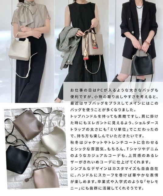大容量でも品があって女性らしい、高見えだけど手の届くコストパフォーマンスにこだわり、大人女性の日常に寄り添うバッグを提案。現在、国内外のECサイト8店舗を展開し、2022年11月にはニューヨーク・ブルックリンでの展示・販売も実現しています。