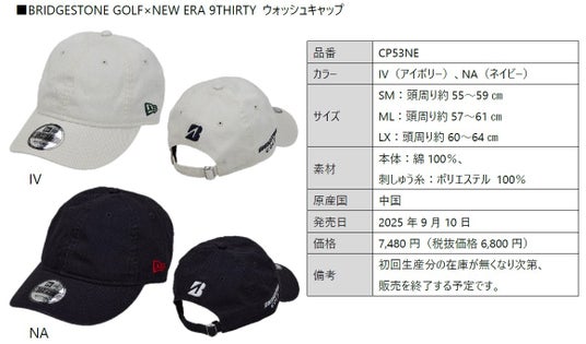 ブリヂストンスポーツ株式会社は、1903年に米国で創業したキャップブランドNEW ERA(R)とのコラボ企画第五弾となるキャップ2モデルを9月10日に発売します。メーカー希望小売価格※1はいずれも7,480円(税込)です。
