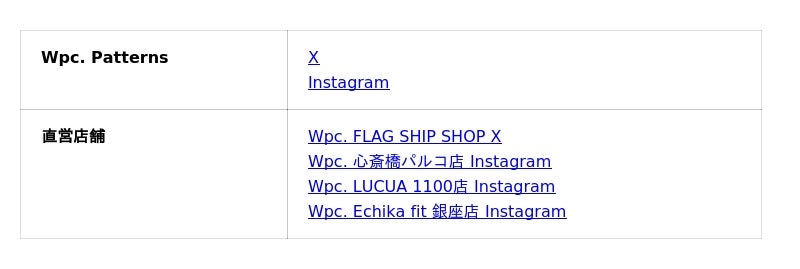 展開ブランド :Wpc. / W by Wpc. / Wpc. IZA / SiNCA by Wpc. / ONDOO by Wpc.
