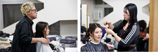 Ashは2014年の協働をきっかけに同大学との交流を深め、以降、継続的にヘアメイクを担当しています。院生が描く世界観を的確にくみ取り、ヘアデザインとして具体化することは、美容師にとって高度な技術力と提案力が問われる実践の場でもあります。双方が専門性を発揮しながら、一つのステージを創り上げる取り組みとなっています。