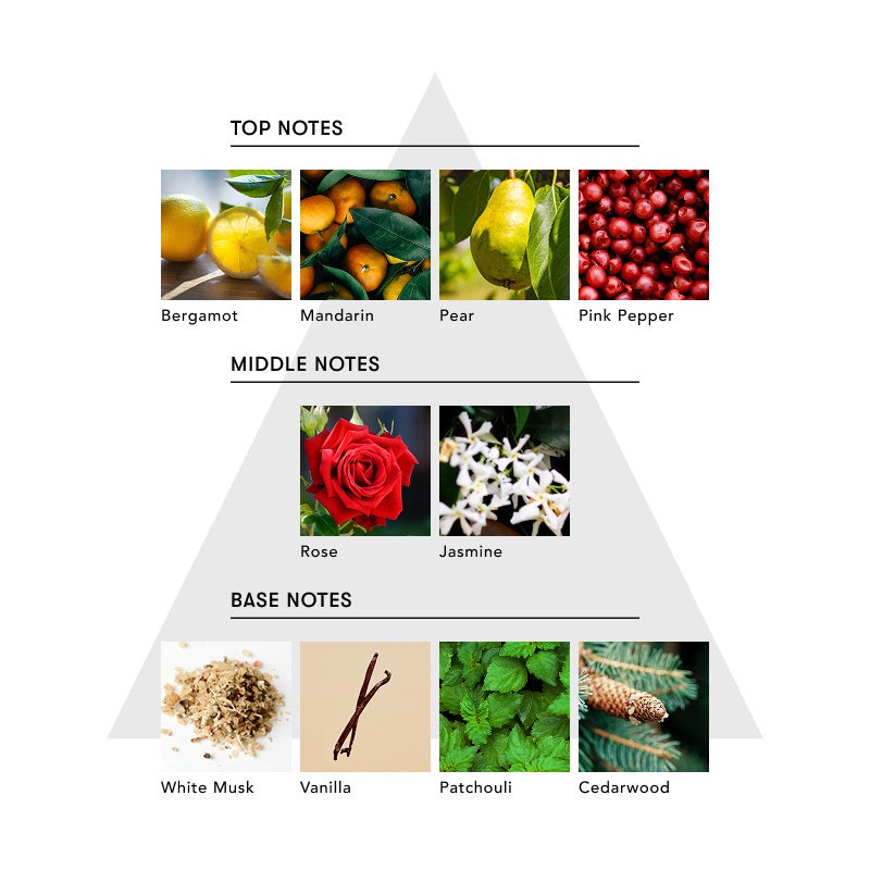 トップは、ペアーや瑞々しくフルーティーな香りにピンクペッパーがアクセントとして香り、やがてまったりとした甘さを放つローズやジャスミンがミドルで広がります。ホワイトムスクやバニラの濃厚な甘さをスパイシーなシダーウッドの余韻が、眠りの森の入口を開きながら、心や脳を柔らかく解きほぐしていく。ライトシプレ調の香りが、まるで、宙を浮いているかのような夢心地気分を誘い、一日の疲労を癒すように睡眠空間を整え、上質な眠りへ導きます。