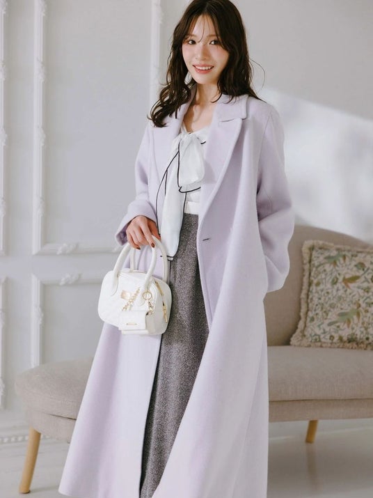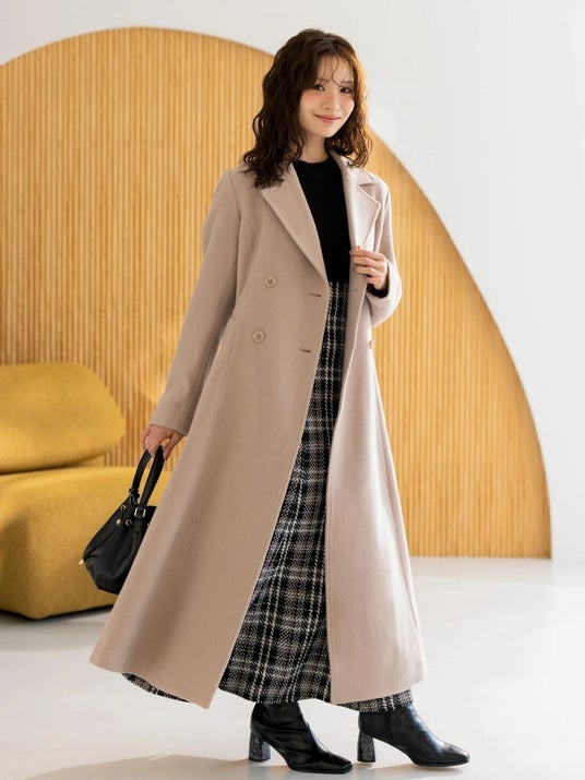 ウール高混率の国内生地を使用した軽くて暖かいロングコート。